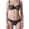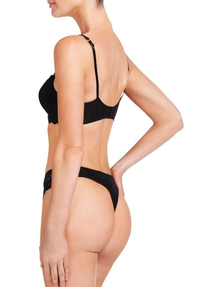 The Body Lace Thong in black matches perfectly with the Body Lace Contour Bra.Β