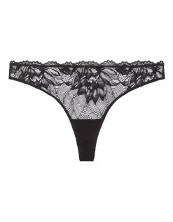 SEDUCTIVE COMFORT brings you everyday lingerie in super smooth fabrics, finished with delicate lace trims. This thong is complete with a medium rise waist, elastic waistband with scallop trim, and a metal tag at the back. Crafted using a sheer lace and microfiber fabrication.