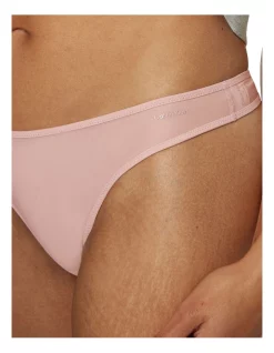 Sheer, revealing, seductive designs define SHEER MARQUISETTE, a luxury range of delicate lingerie. This thong features a sheer stretchy lace fabrication, medium rise waist, and a logo detail on the hip.