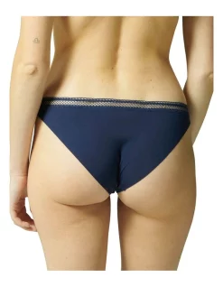 The Vertige Bikini Brief, by Simone Perele, is made from French floral lace, with a knitted fabric back that offers a clean cut and complete cheek coverage. A French floral lace front and a knitted fabric back that offers complete coverage and invisibility under clothing.